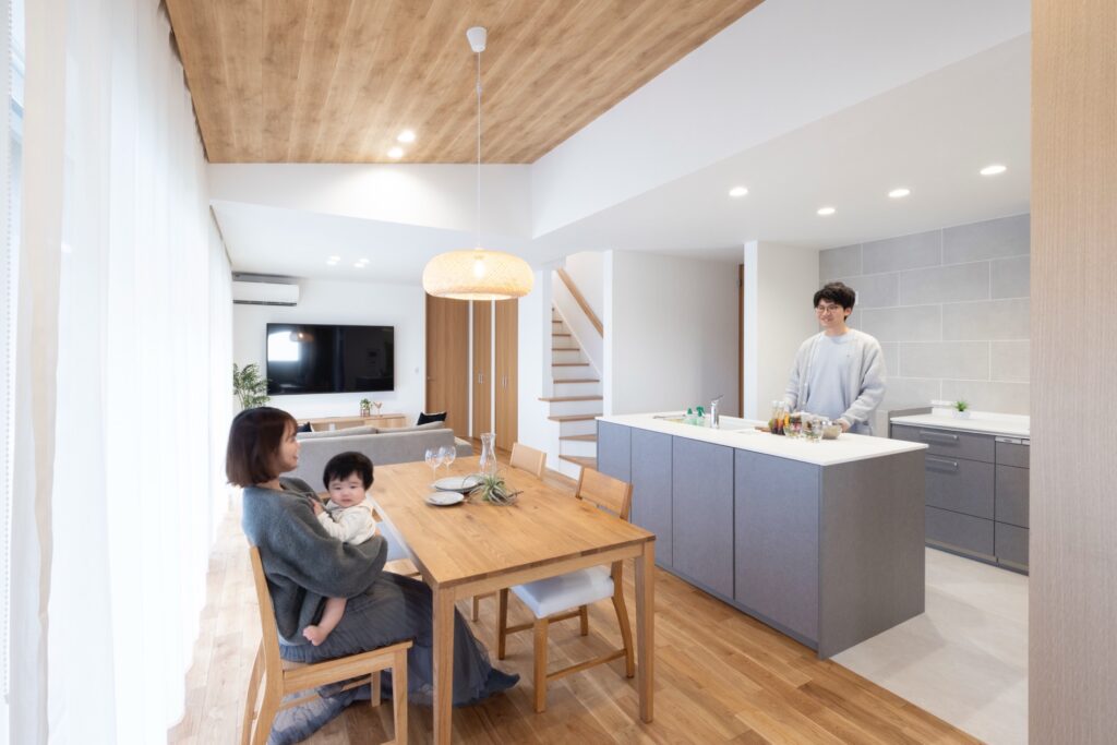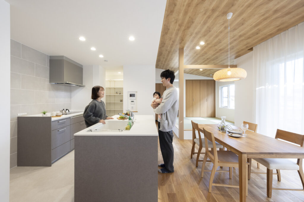 妊娠中に家づくりを始め、出産前には、打合せを終えれて、本当に良かったと言ってました。子供が産まれると、アパートでは手狭で、早く引っ越した~いと、ぼやいています。