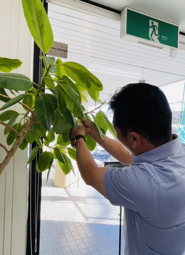 島崎支店長の朝は観葉植物の水やりからスタートです♪