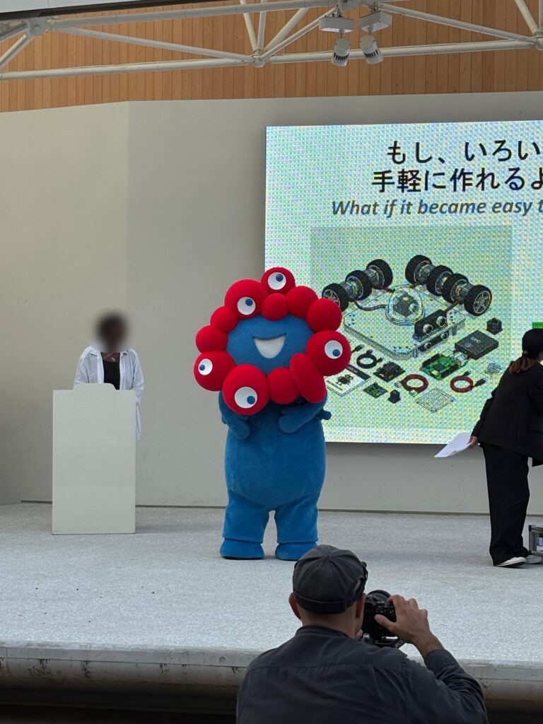 歩き疲れているところ、生?ミャクミャクに会えてテンション↑