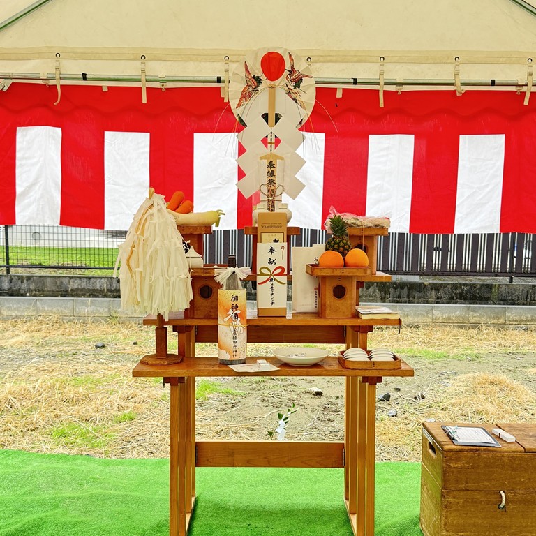 直前までの雨が止み、連日の暑さが嘘のように過ごしやすい気温の中での地鎮祭を無事に終えることができました。