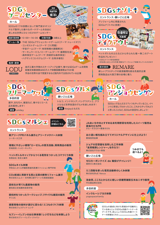 他にもSDGsマルシェ、ゲームセンター、ナゾトキ、フリマ、グルメなどなど