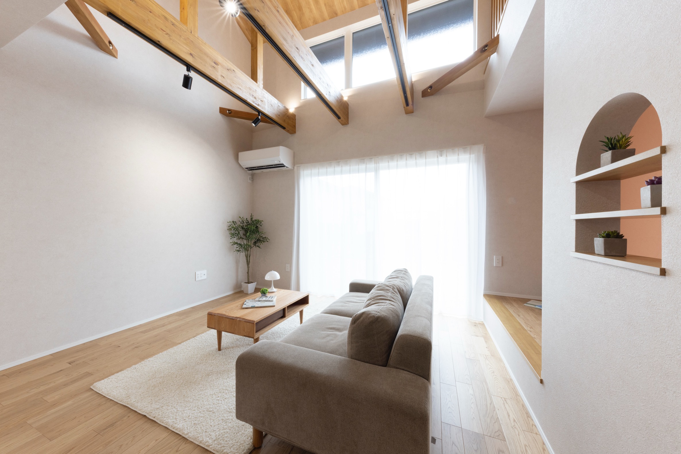 吹抜け空間がリビングとフリースペースをつなぎ、家族の会話がひろがる間取りのお家。