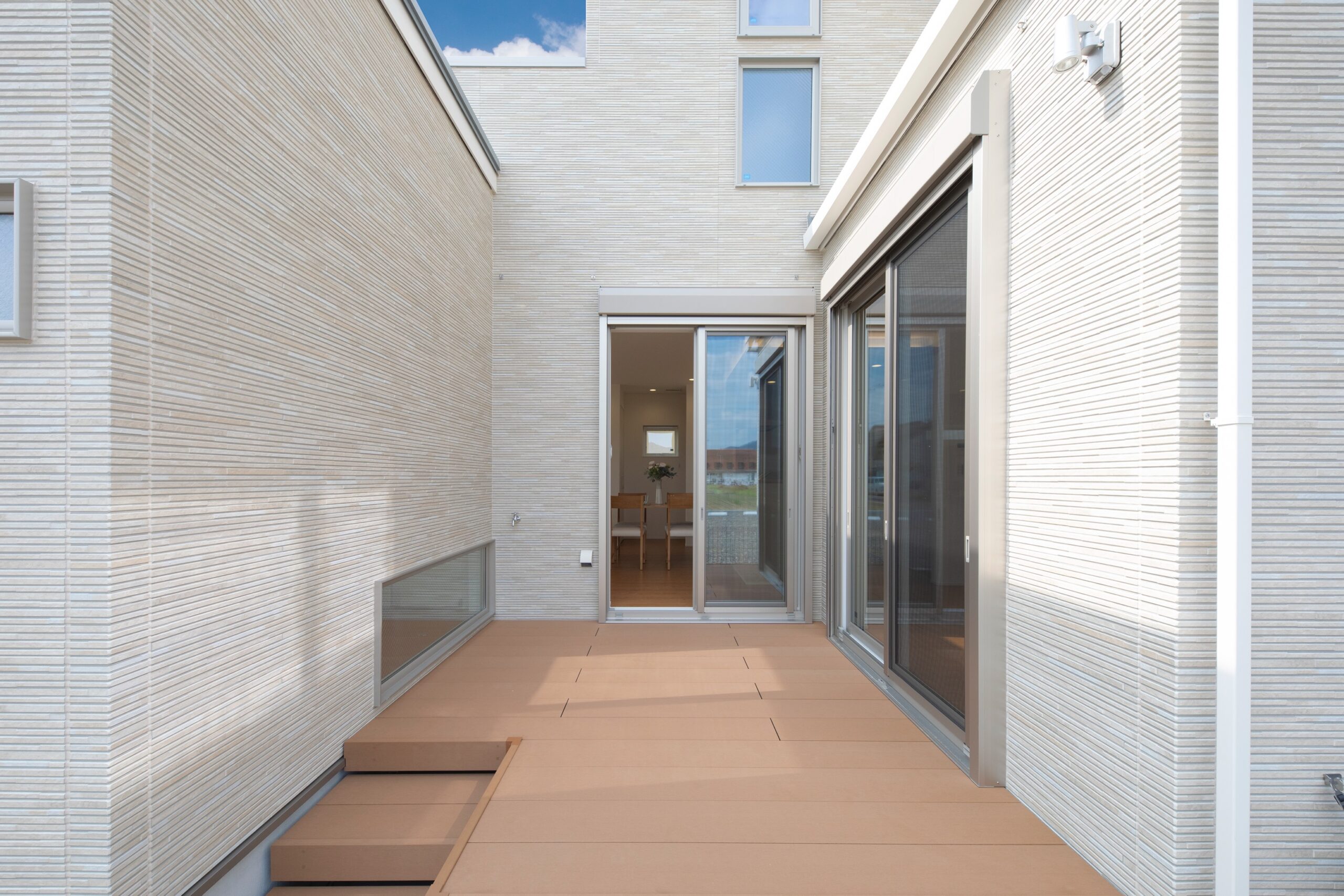 南北に長い室内に中庭から光と風を導きます。休日のブランチは見晴らしのいい中庭で、晴れた日のお洗濯は外干しも。色々使えて家族が楽しむ素敵な中庭ライフができるお家です。