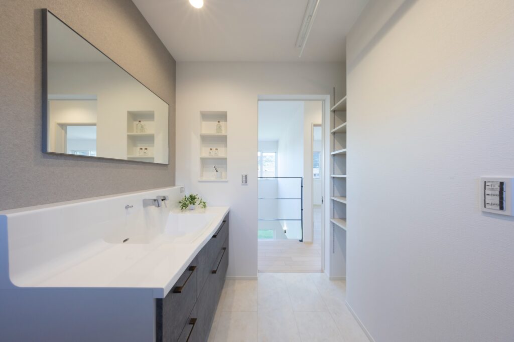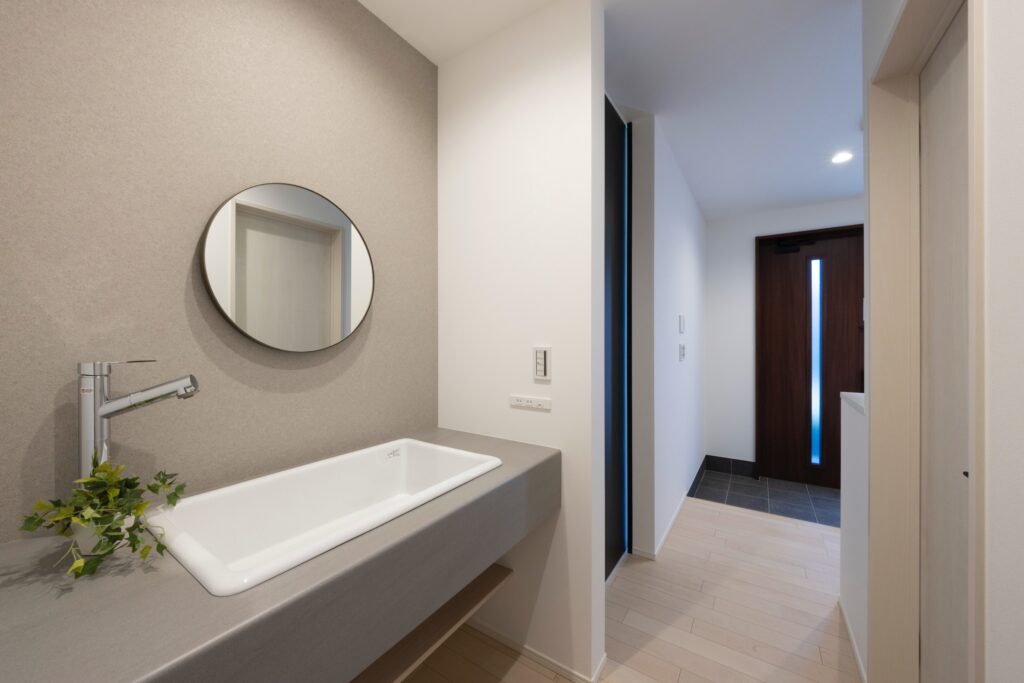 帰宅後すぐに手洗いうがい玄関直結のおかえり洗面。