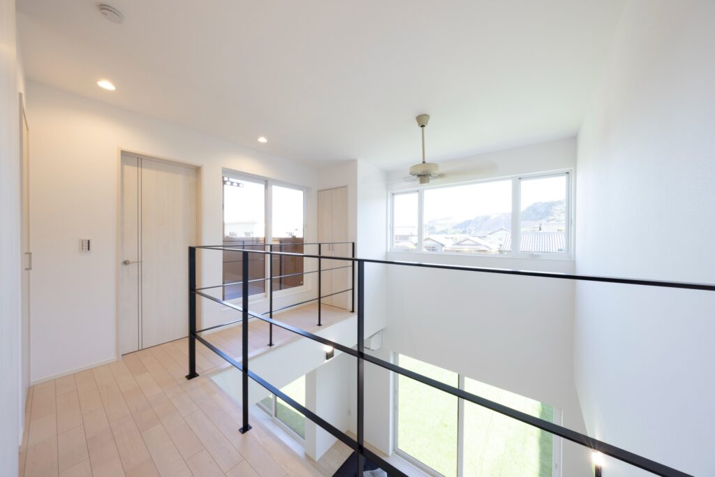 2階からの自然光も取り込む明るい吹抜けスペース。