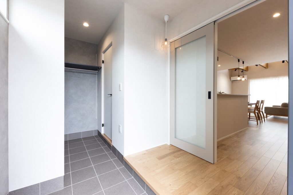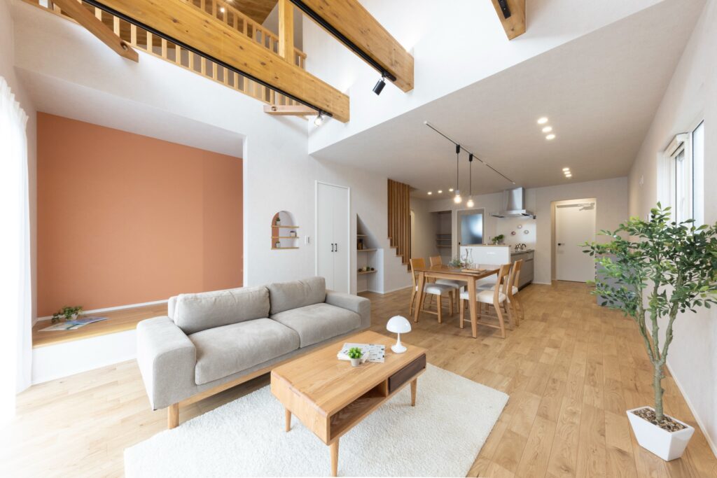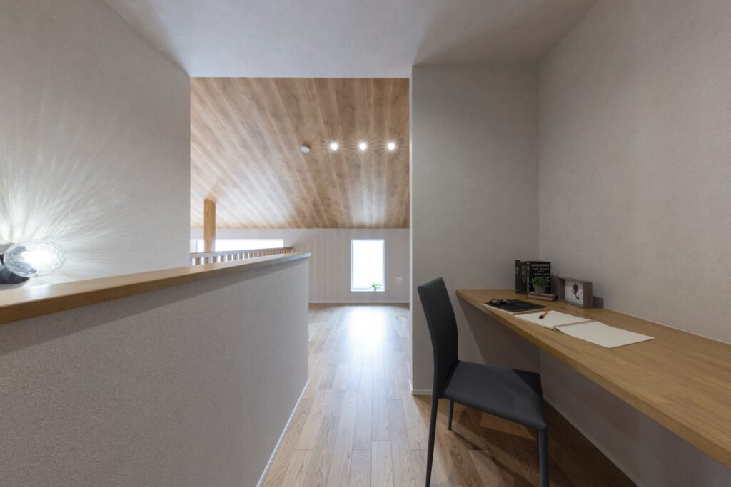 家族時間が増える、つながりの家 吹抜け空間がリビングとフリースペースをつなぎ、家族の会話がひろがる間取りのお家。 面積・間取り:110.97㎡(33.56坪) 価格帯:2000万円台 担当者:佐々木 担当者からのコメント POINT グレー&ダークグリーンのシンプルなファサードにグリーンが良く映える外構計画。 たっぷり買った食材も最短で片付けられる家事楽な2wayお帰り動線。 スッキリ隠せる靴入れスペースがある玄関框。 木の梁がダイナミックな吹抜け。自然光がたっぷり差し込む家族が集う吹抜けリビング。 本を読んだりお昼寝したりちょっと籠れるヌックスペースのあるリビング。 たっぷり買った食も最短で片付けられる家事楽な2wayお帰り動線。 玄関からすぐの洗面室カウンター付きだから髪も座って乾かせます。 『ご飯できたよ』家族の声も聞こえてLDKとつながるフリースペース。 2人並んで座れる広々ワークカウンター。 施工事例 費用から選ぶ 1,000万円台 2,000万円台 3,000万円台 4,000万円台 ポイント別 造作 洗面化粧台 家事楽 キッチン 外観 玄関 リビング 収納 平屋 外構 ガレージ 吹き抜け ランドリースペース 事例一覧へ戻る