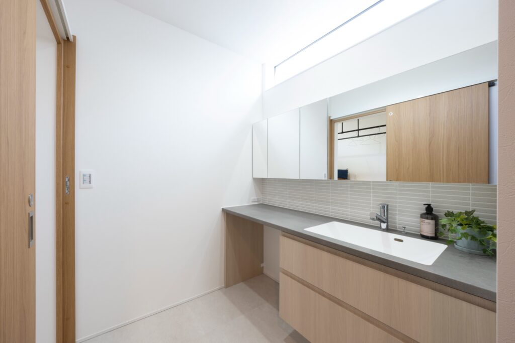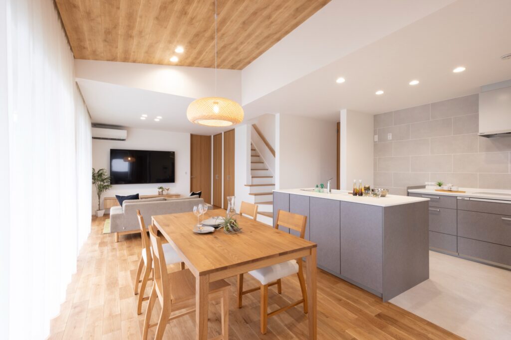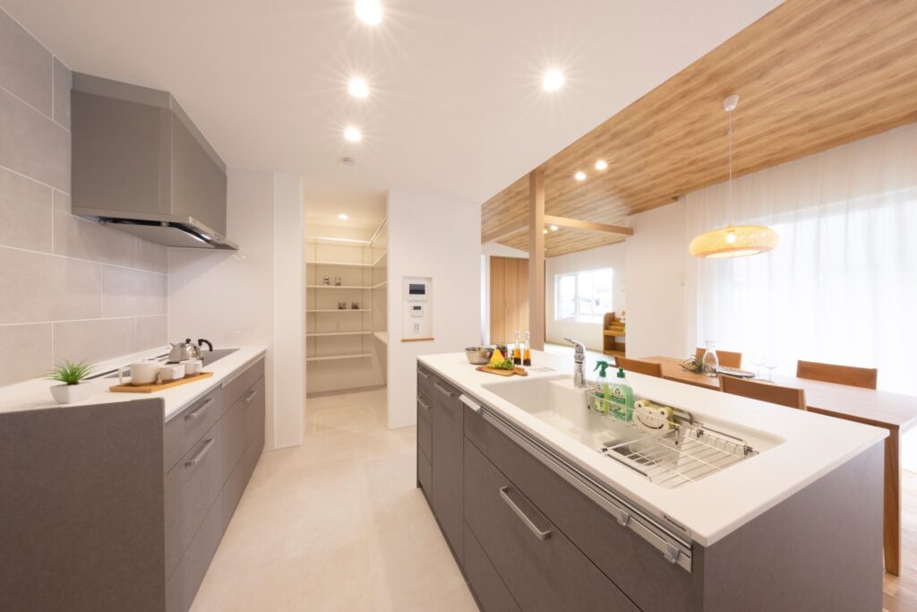 家事をしながらも家族の様子がわかる広くて明るいリビング。走り回れる間取りは子供の笑顔があふれ家族の癒しの空間。