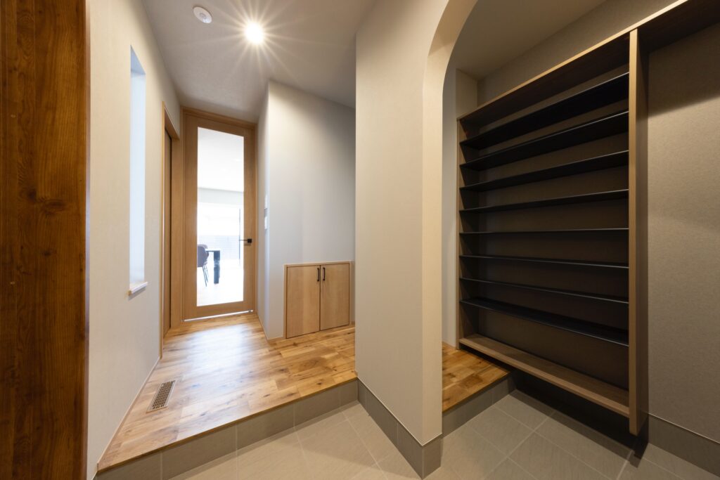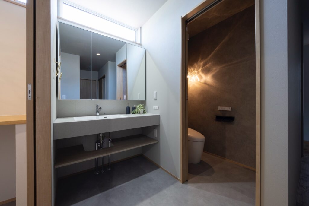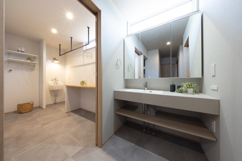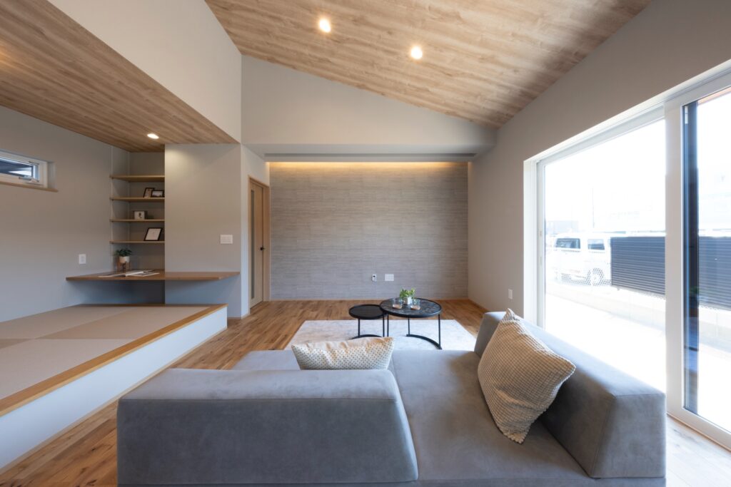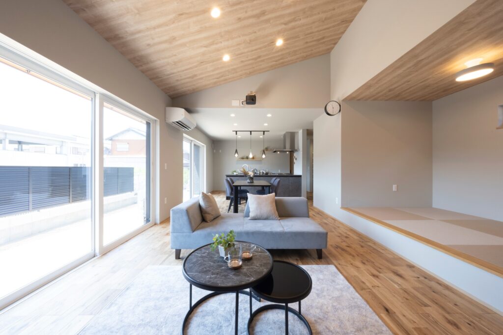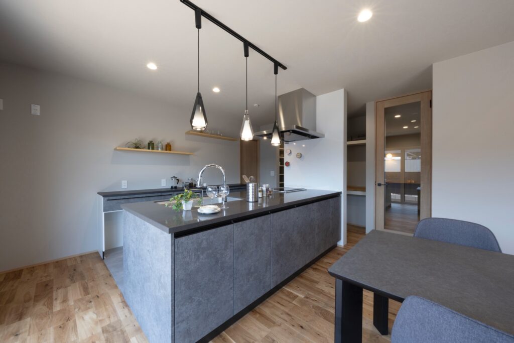 暮らしが整い 家族が繋がる平屋 すべてがワンフロアで整い、家事も子育てもちょうどいい暮らしのお家。 面積・間取り:115.11㎡(34.82坪) 価格帯:2000万円台 担当者:鷹羽 担当者からのコメント POINT ブラックと石目のアクセントのサイディングで落ち着いたモダンな印象の平屋外観デザイン。 手洗い洗面がすぐの収納をたっぷり設けた家族用と、いつもスッキリキレイが保てる来客用とを使い分けする2way玄関。 肌触りのよいオークの無垢床とリビング横の小上がりの畳コーナー。お昼寝したりレゴやプラレールもたっぷり広げて遊べます。 勾配天井で開放感のある明るいリビング。 お家の真ん中回遊キッチン。どこからも入れてどこからもお手伝いできる家族が集うキッチンに! スタイリッシュな洗面化粧台。二人並んで身支度できるちょうどいいスペース。 たっぷり干せるランドリー兼脱衣スペース。付け置きできるスロップシンクやアイロンカウンターも備えてすぐのFCLに片付けられる家事楽な洗濯動線。 ちょっと籠れる主寝室横の書斎。 施工事例 費用から選ぶ 1,000万円台 2,000万円台 3,000万円台 4,000万円台 ポイント別 造作 洗面化粧台 家事楽 キッチン 外観 玄関 リビング 収納 平屋 外構 ガレージ 吹き抜け ランドリースペース 事例一覧へ戻る